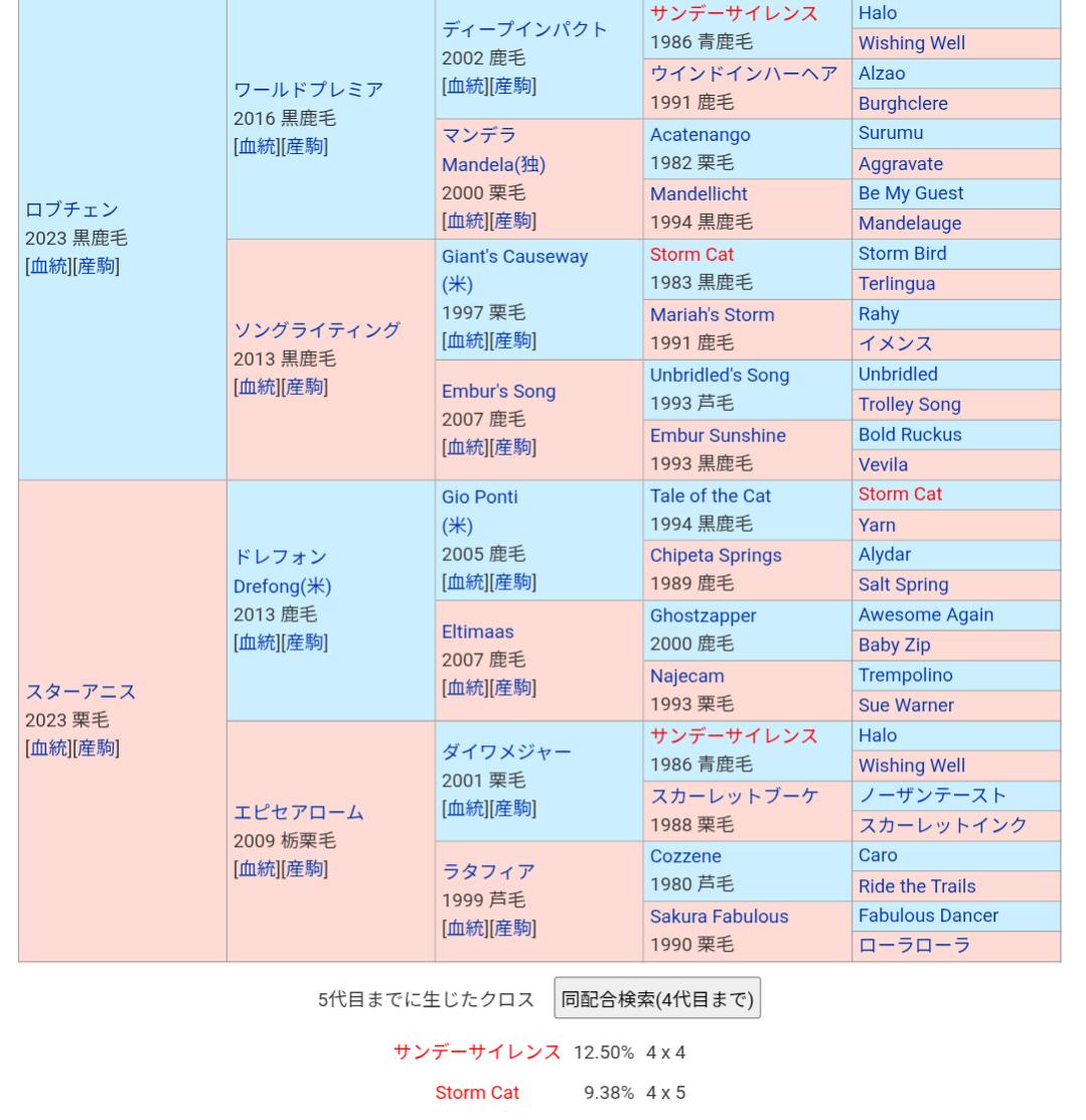 | … | 58926/04/19(日)16:54:34No.1421865209+ロブチェンの母親がこれまでつけて来た種牡馬は |