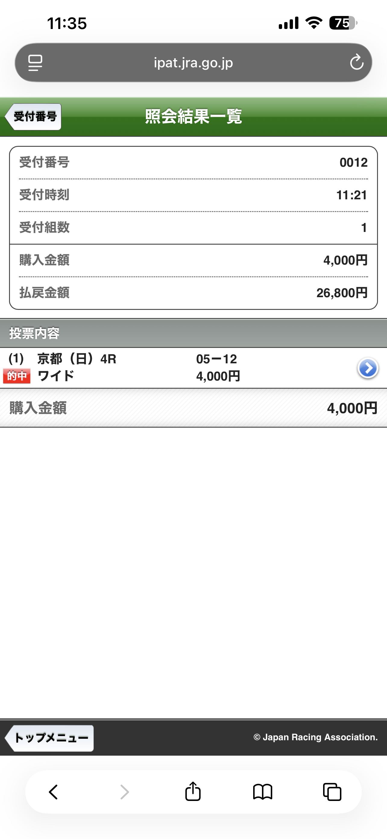 | … | 52026/04/26(日)13:23:21 ID:T60Jq2DMNo.1423986852+初競馬場なんですがパドックでなんとなくビビッと来た机タンショウしたら来ました!!! |
