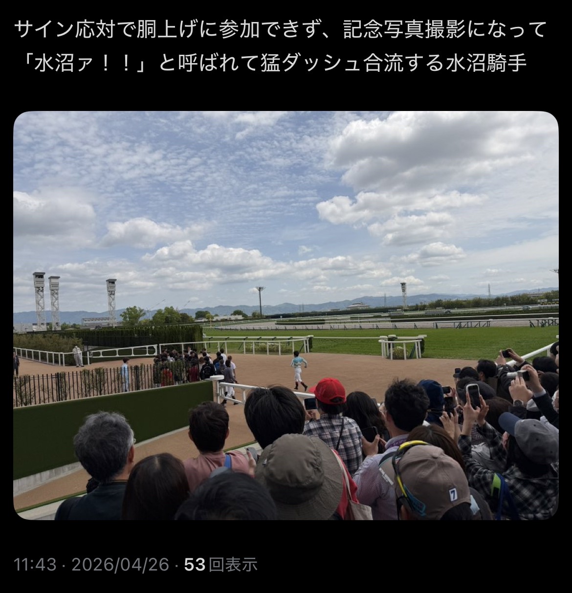 | … | 5026/04/26(日)11:49:33 ID:sQG9AWA.No.1423960582+>京都着きましたけどなんかウイナーズサークル前異様に人いるなと思ったら水沼のファンどもですか |