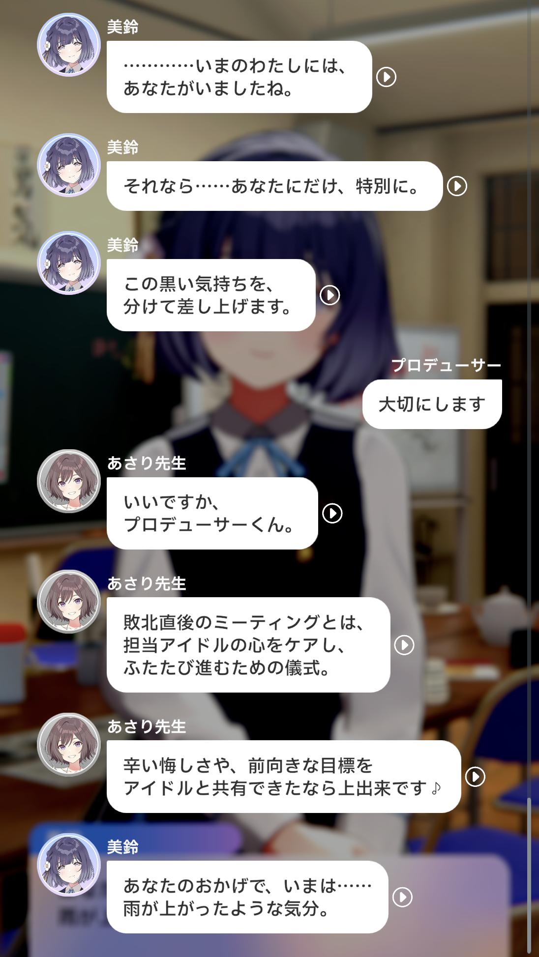 | … | 3126/04/29(水)17:29:47No.1424987385+前半syngupの掘り下げ後半プロデューサーとの掘り下げみたいなシナリオでしたわね |