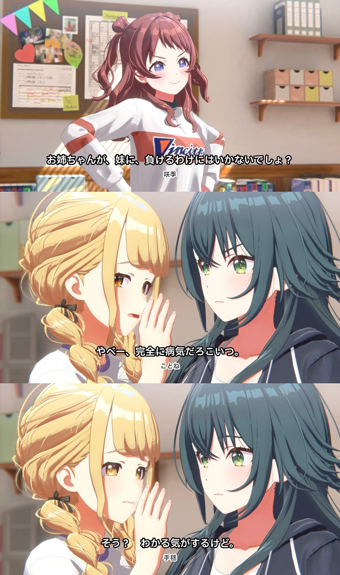 | … | 10226/04/30(木)01:52:11No.1425166491+困ったなりんちゃんが本性妹だとsyngupは手毬お姉ちゃんと愉快な2人の妹のユニットになってしまう |