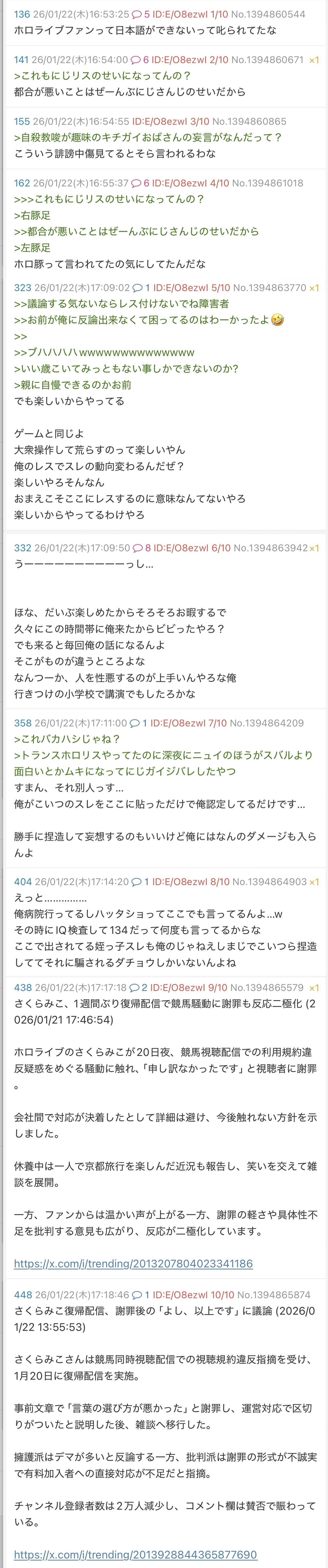 | … | 480無念Nameとしあき26/01/22(木)19:52:59No.1381968079+ちなみににじリス連呼してる奴がるしあやまふまふ粘着してたよ |