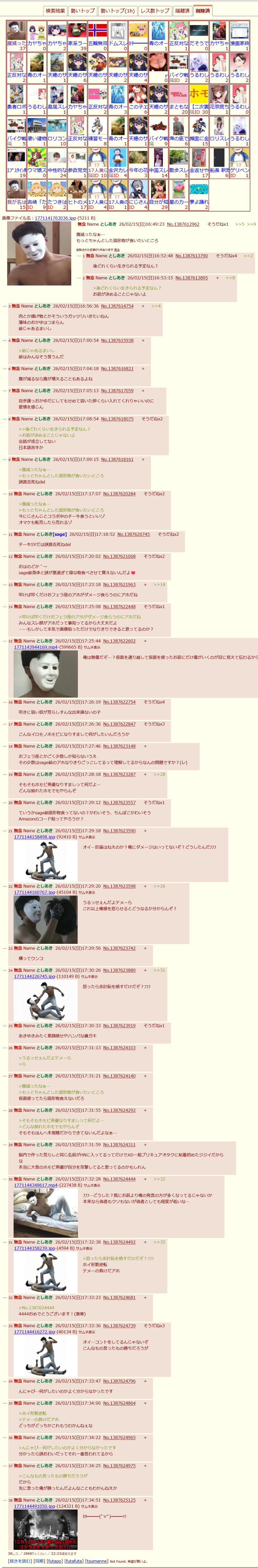 | … | 84無念Nameとしあき26/02/17(火)17:13:45No.1388064547そうだねx3朝からおはスレ荒らしてて閉まったから |