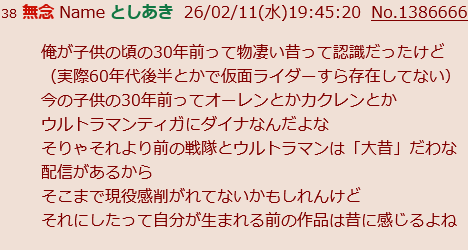 | … | 48無念Nameとしあき26/02/20(金)20:14:48No.1388734024+>俺が子供の頃の30年前って物凄い昔って認識だったけど |
