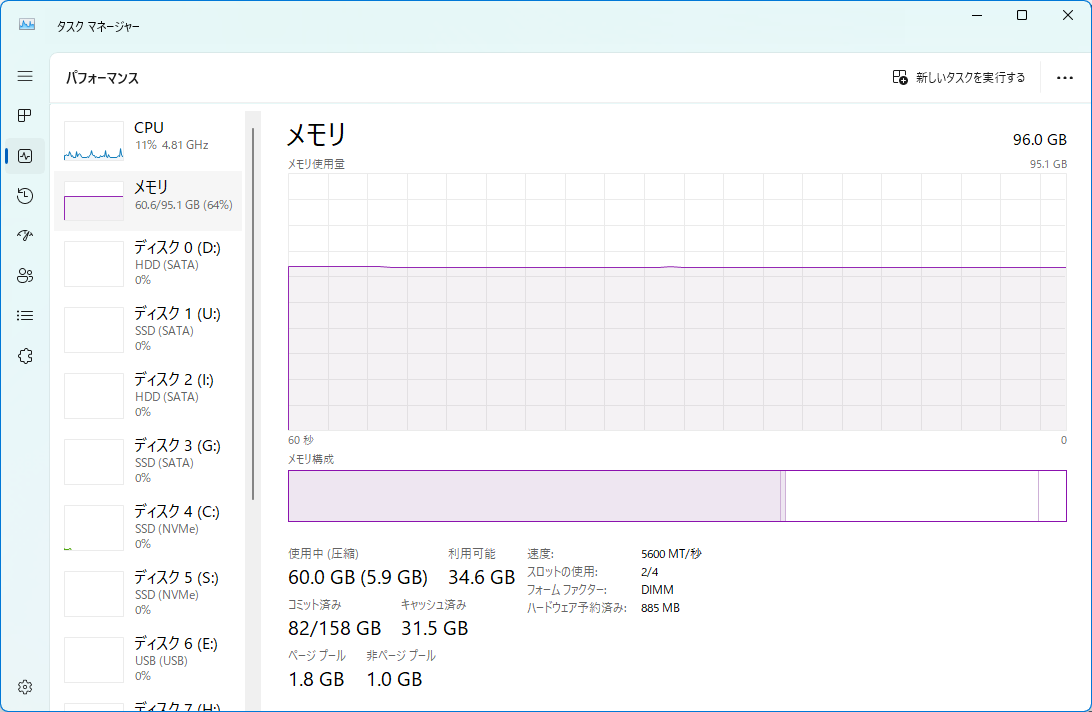 | … | 10725/04/19(土)17:44:16No.1303823554+>メモリだからなんか計算してるわけじゃなく作業領域を確保してるだけなので別に余ってるからと食い潰したとこで処理速度が上がるとかは無いと思う |