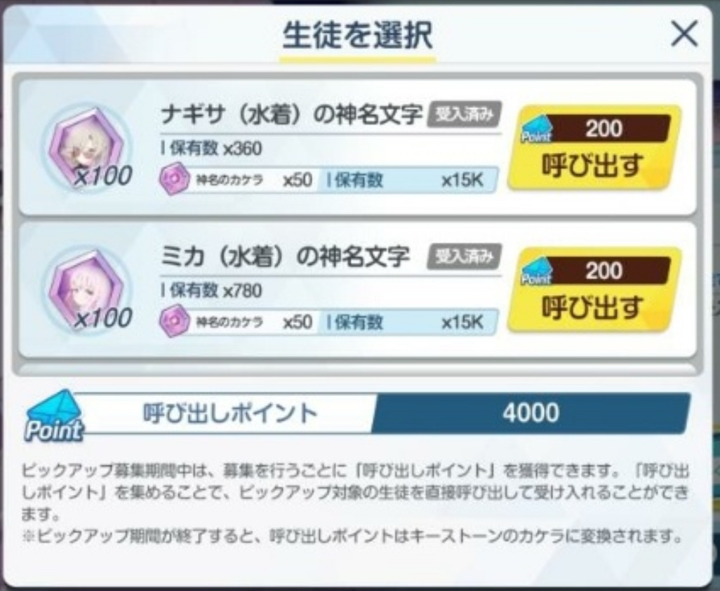 | … | 525/07/30(水)16:52:58No.1338309461+>400連水着ナギサ1水着ミカ0… >アロナ? 星3自体は? |