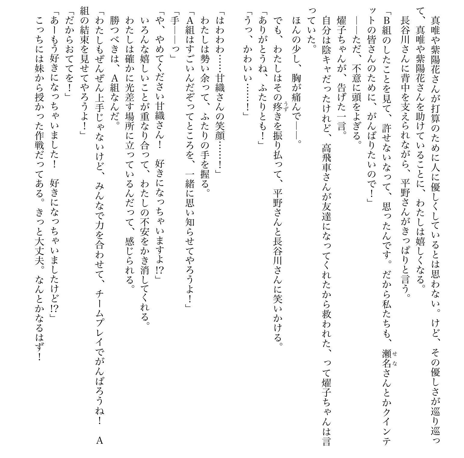| … | 9125/08/01(金)12:28:47No.1338849869+紫陽花さんとキスとか無理〜とか言ってるくせに紗月さんには求められたらすぐキスするからな |