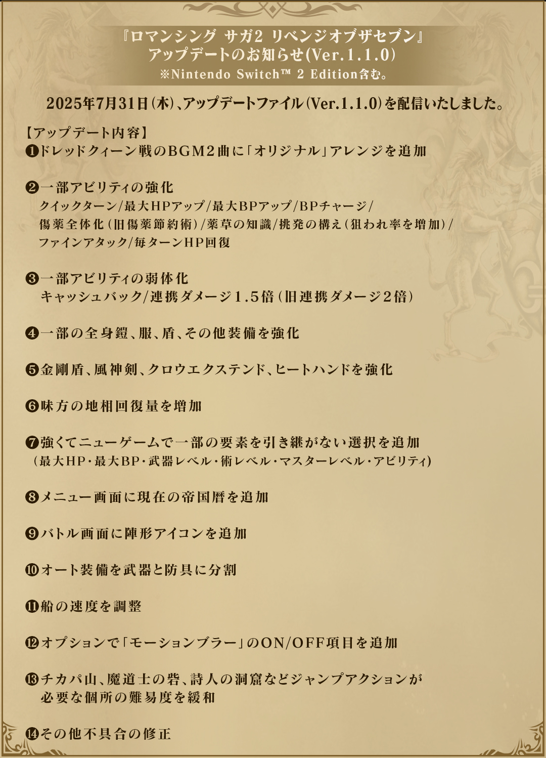 | … | 825/08/01(金)11:28:22No.1338835751+リベサガまだやってないけど一人用ゲームにバランス調整パッチがあとから来たりするものなんだな |
