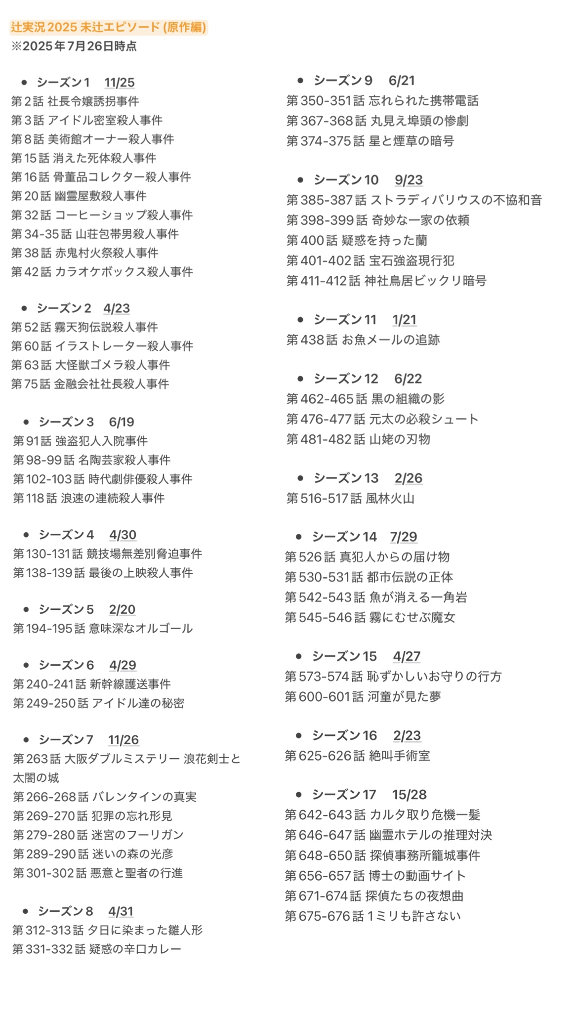 | … | 8225/08/03(日)20:28:44No.1339690838そうだねx3>できた!まだまだ辻ってない最新版原作回リスト〜!! |
