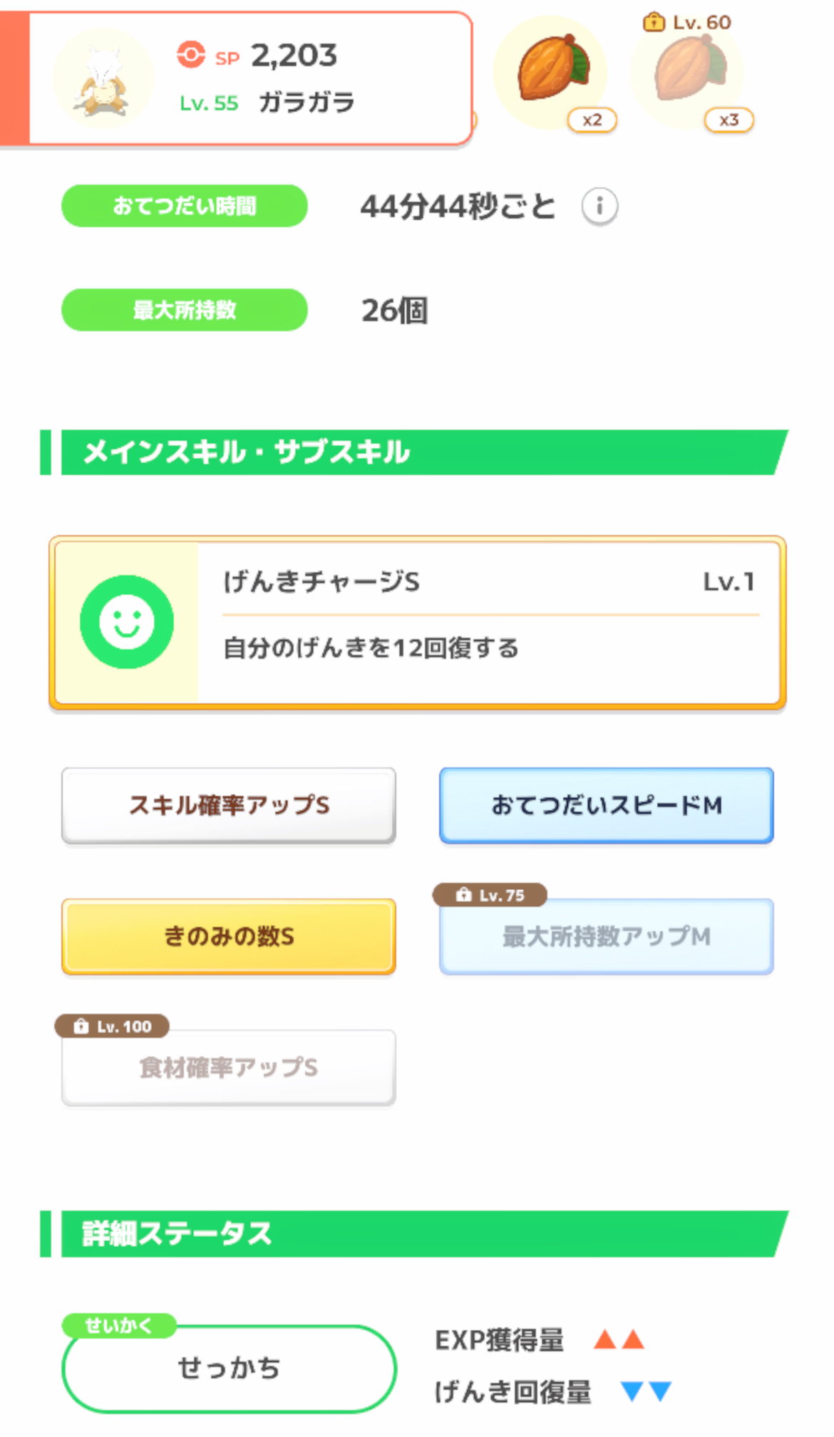 きのみS必須でおてスピ盛れるほど良いスキル確率もあったら最高