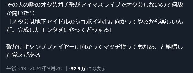 | … | 1025/08/05(火)17:16:43No.1340248832そうだねx29>こないだアイマスのライブ初参加してこういう人たちと初めて関わり持ったんだけども |