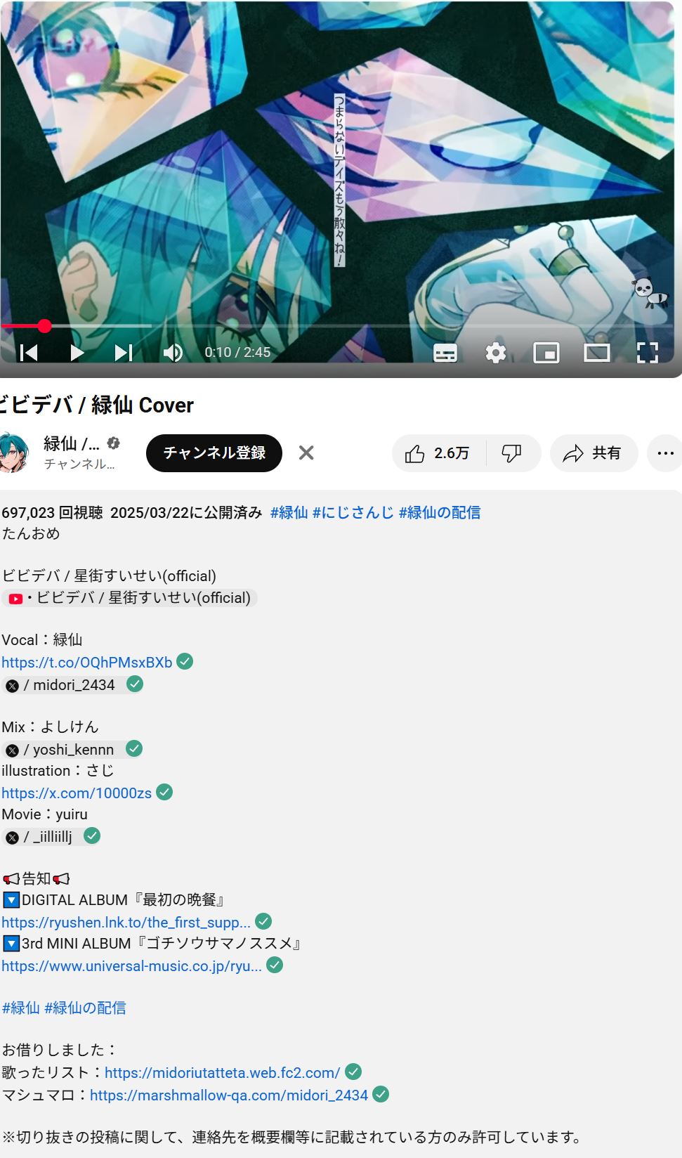 | … | 12325/08/05(火)21:20:43No.1340328034+>>ゆめおは直接本人にかけあってカバーの許可貰ってたぞ |