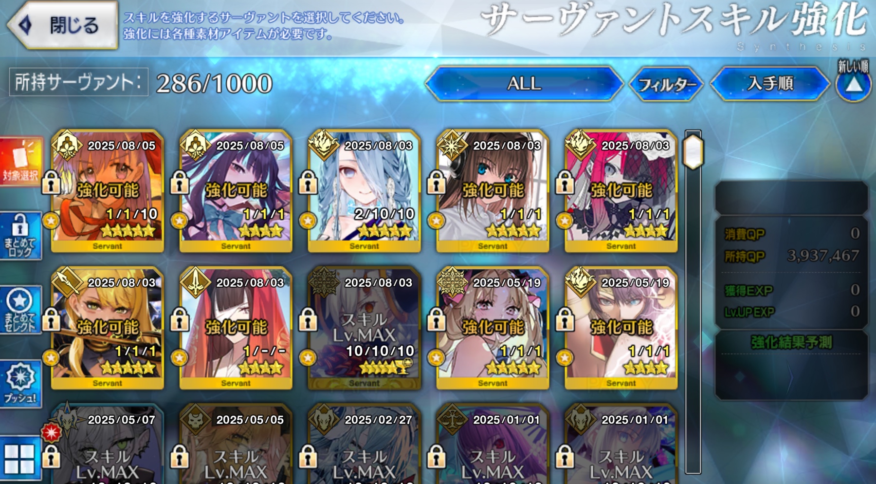 | … | 2625/08/06(水)12:40:37No.1340490045+戴冠戦が来るたびにスキル上げたり聖杯あげたりしてるせいで毎回QPが減ってる |