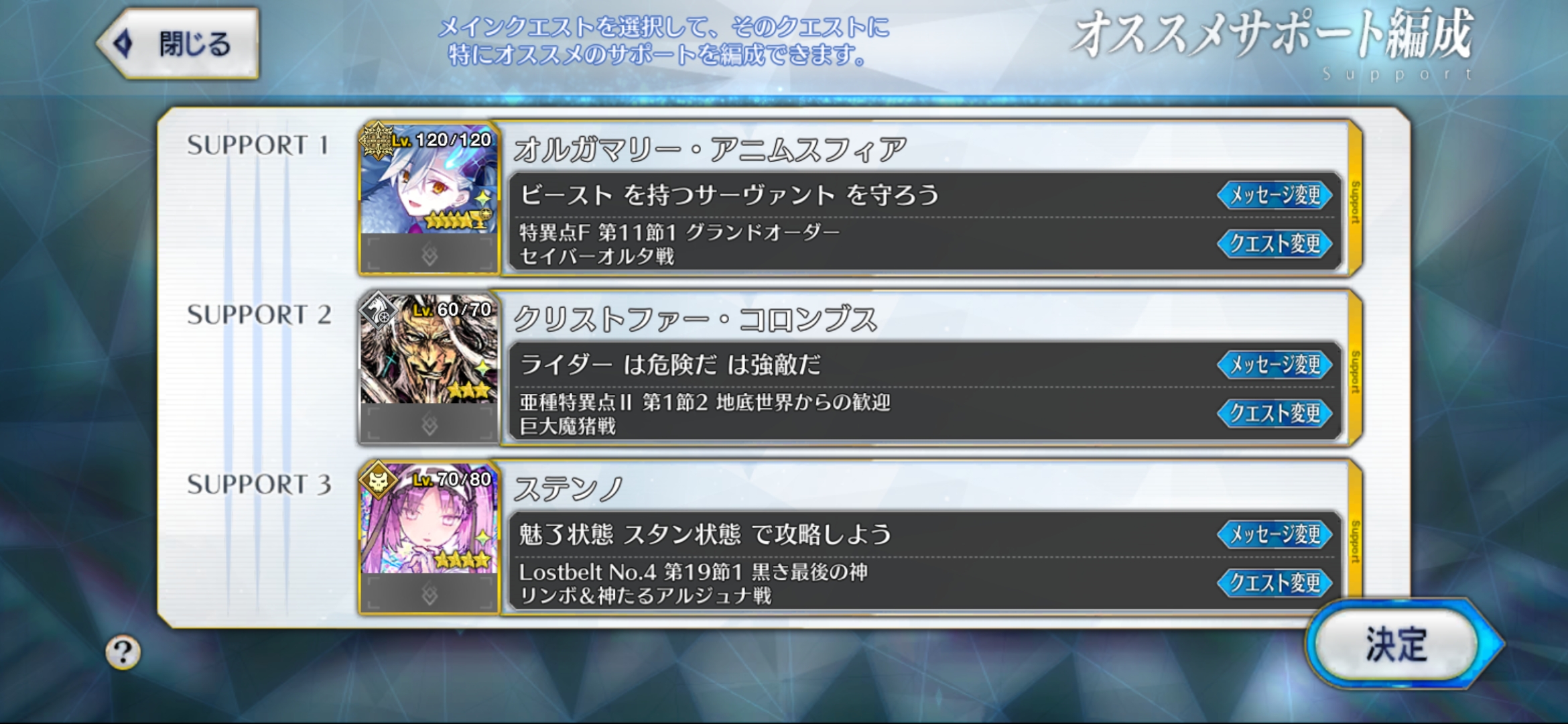 | … | 8725/08/06(水)12:54:17No.1340494175+>オススメサポ設定してねえなそういや…どこに誰置くのがいいのかよく分からぬ だいたいガチの難所はフレンド固定でオススメ置けないから別に大丈夫だろってとこしか候補にない |