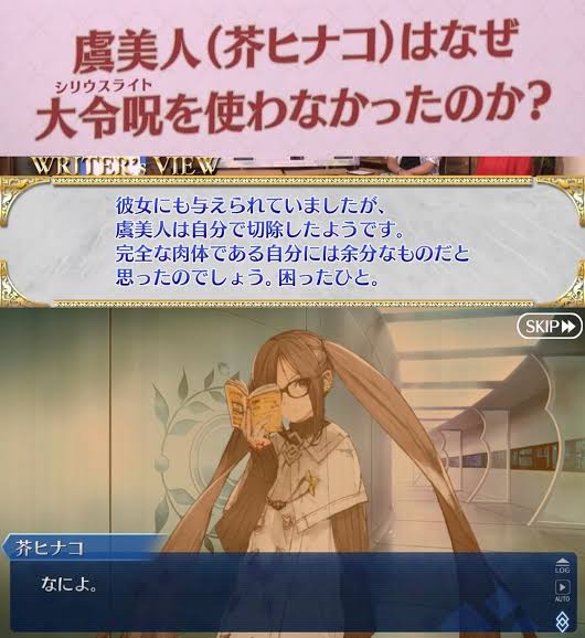 | … | 99925/08/06(水)14:27:22No.1340514693そうだねx1トラオムはどう見てもしょちょーとカルデアス周りの設定に深くかかわってるとしか思えない話を出しておいてスキップ可能はおかしいだろきのこ!! |