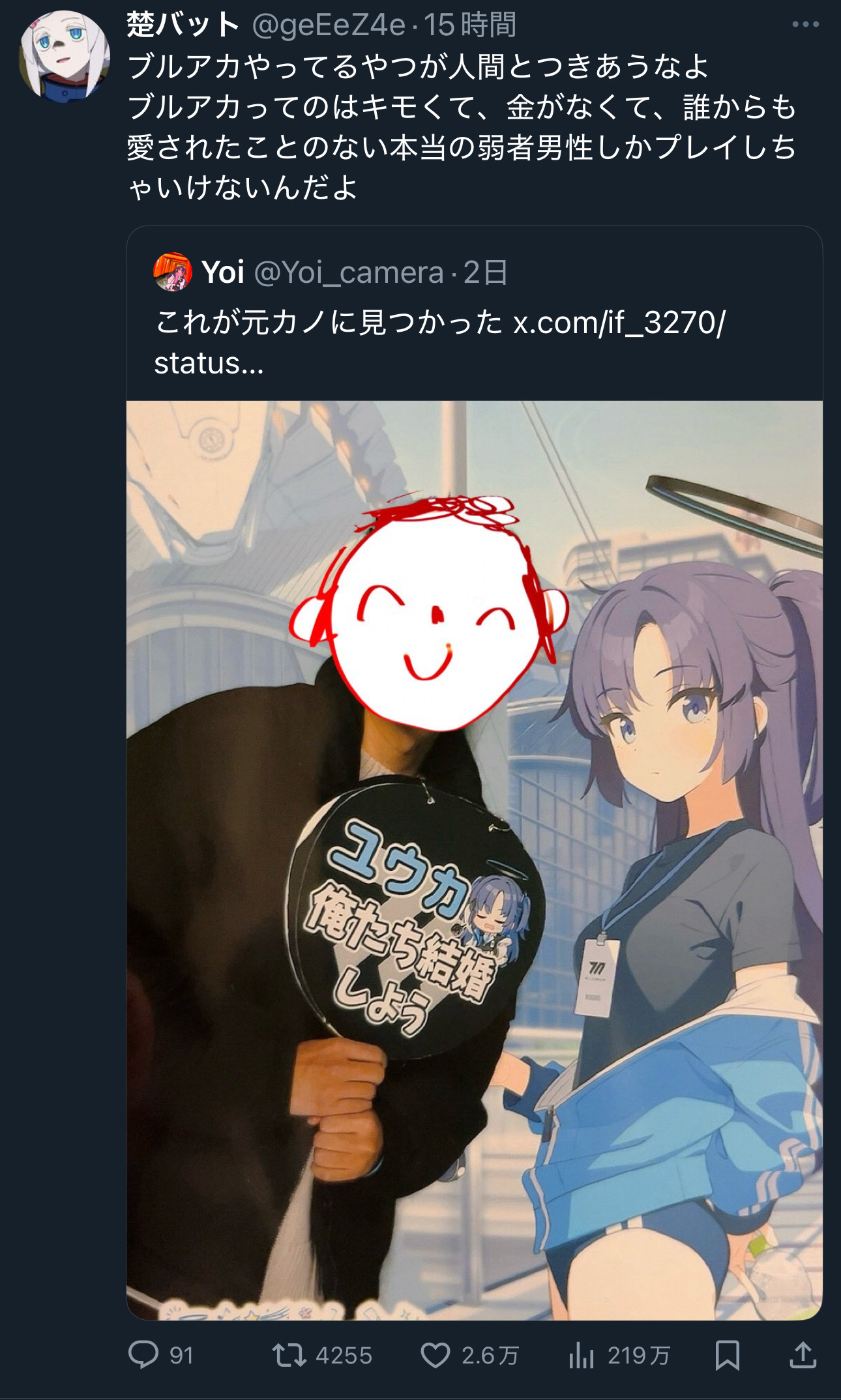 | … | 825/08/07(木)22:24:59No.1340945270+ブルアカやってるってだけで人物像が酷すぎるだろ |