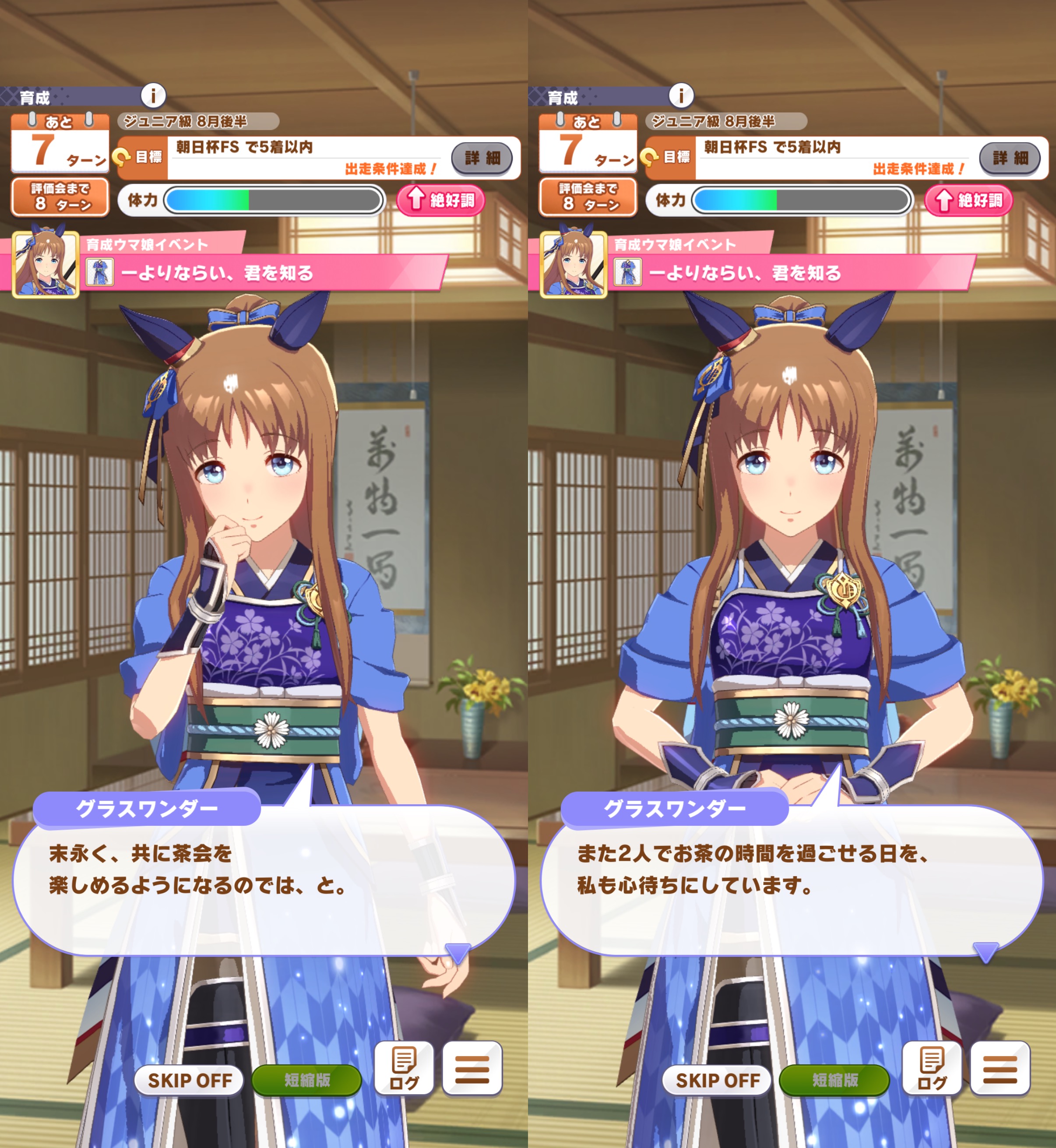 | … | 22725/08/09(土)12:57:05 ID:9KRXMh2.No.1341382693そうだねx1>一旦全スキップで飛ばして育成してからギャラリーでシナリオ見てたんですがおすすめ再生だと選択シーンこうなるんですね >fu5414048.jpg (マイルでおはマイルの相手しても仕方ないので忘れな草賞に出るのが)おすすめ! |