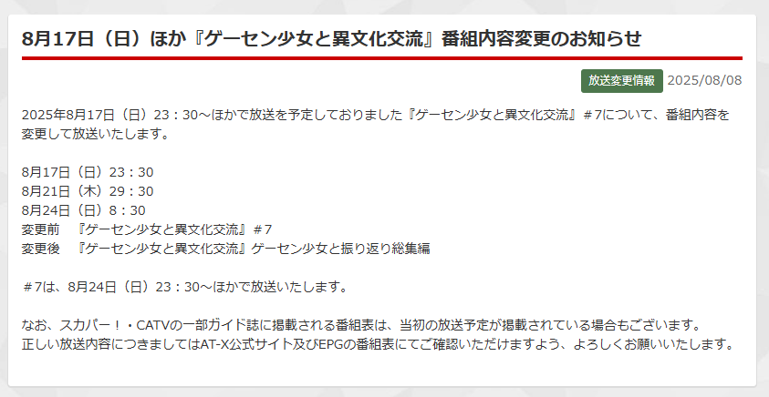 | … | 75725/08/11(月)02:03:42No.1341961193+1クール13週あるから全12話で1回休むだけならそんなに問題は無い 2回以上だとまあヤバい |