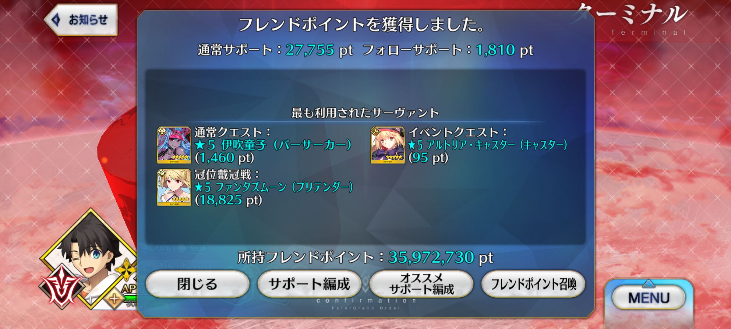 | … | 4625/08/12(火)23:45:31 ID:U5ETC08UNo.1342610365+でも折角だからフレンド込みのトリプル冠位とか1回はやってみたくなるよね |