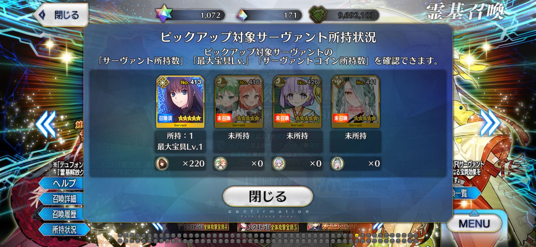 | … | 44725/08/13(水)00:55:19 ID:qZThl0A2No.1342632038+青子ひびちかカズラが引けたら宝具0から1で最高だったんだが |