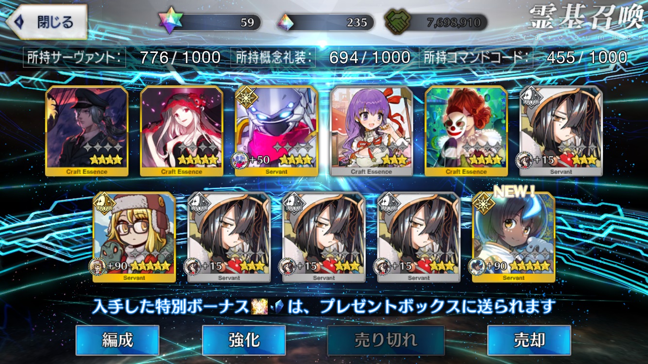 | … | 7725/08/12(火)23:51:49 ID:IRlcUVf.No.1342612548+所長はすり抜けなし275連で宝具5になったがその後調子こいてシエルパイセンと闇コヤンで両方ほぼ天井したので |
