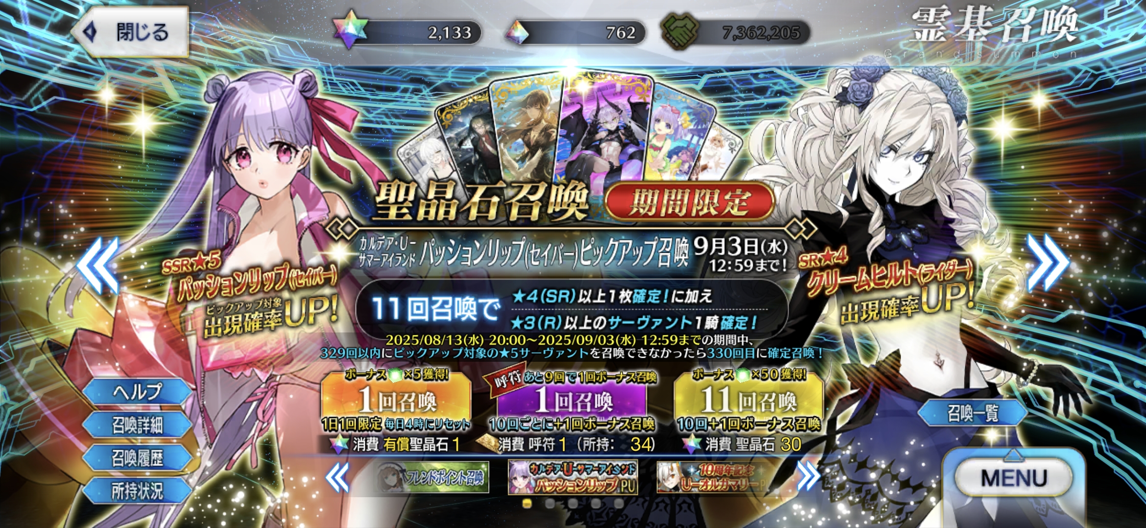 | … | 3825/08/13(水)23:11:27 ID:5ju/VdEANo.1342902133+今年の周回三銃士は冠位英霊たちかのう |