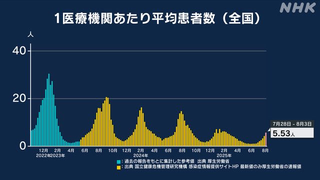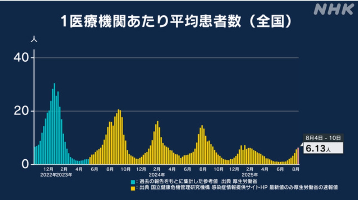 | … | 2425/08/16(土)02:29:29No.1343639950そうだねx5>患者数見るとパンデミックだった頃とそんなに変わらないくらいまだ流行ってるんだよね |