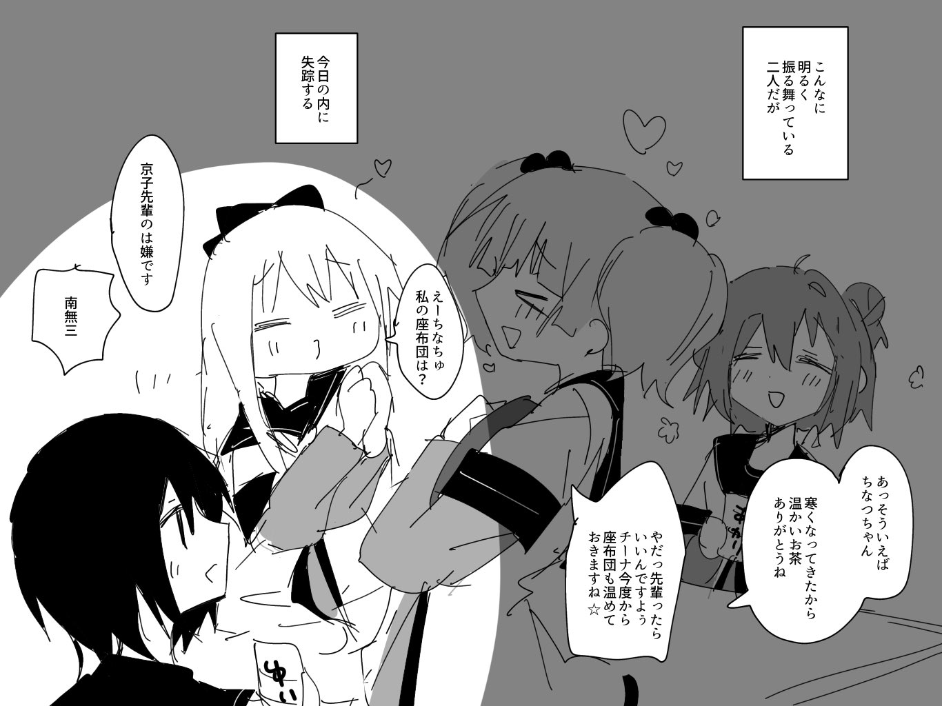 ちなつちゃんがいつものように湯呑みを四つ用意しちゃって地獄みたいな空気になるのいいよね…