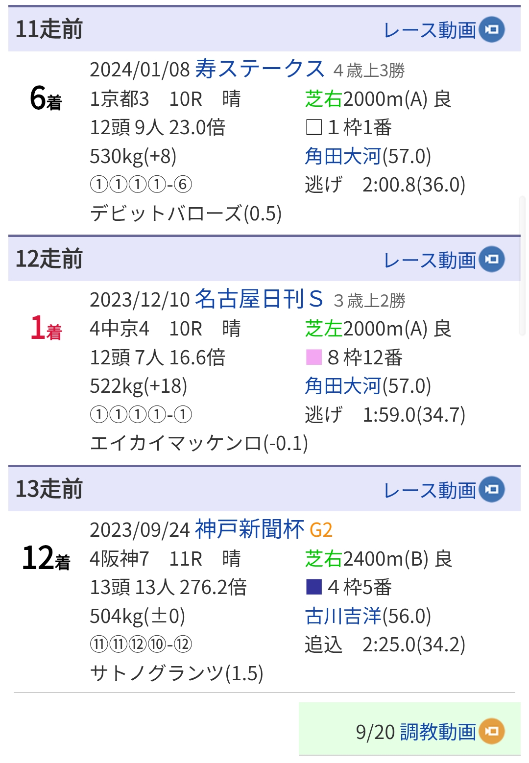 | … | 58725/08/16(土)16:16:37 ID:XQu4qlw.No.1343779947+矢車賞も2200ですし距離の影響は少なからずあるかもしれないですね |