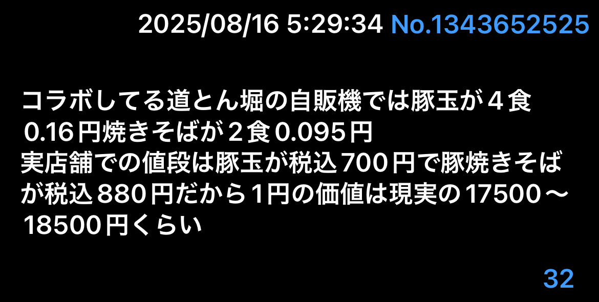 | … | 2425/08/16(土)17:45:32No.1343803472+円の価値も違うらしい |