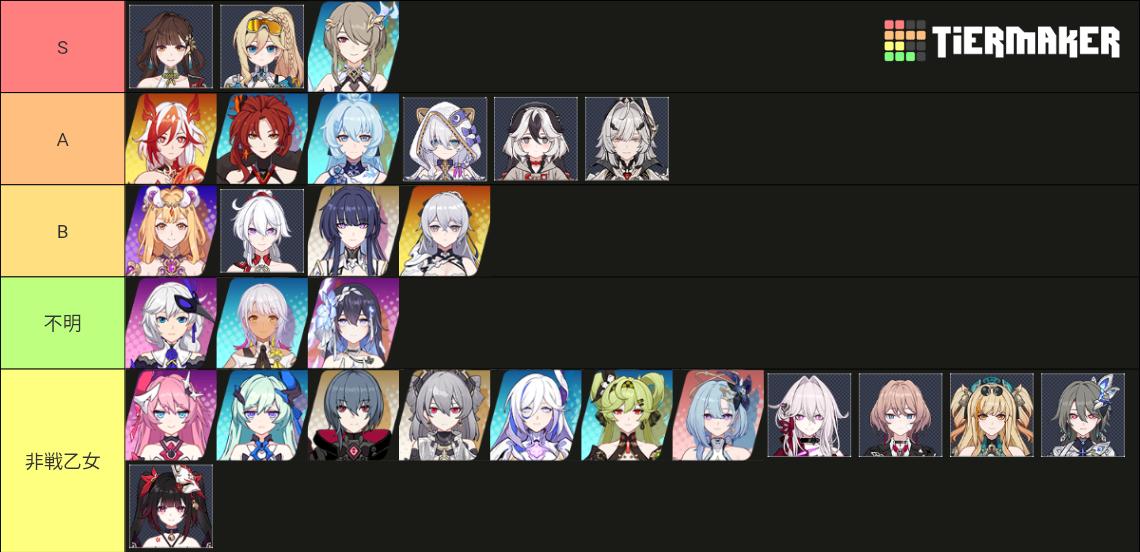 | … | 4325/08/16(土)22:19:23No.1343908398そうだねx6>https://tiermaker.com/create/honkai-impact-3---73-val-tier-list-maker-16633758 |