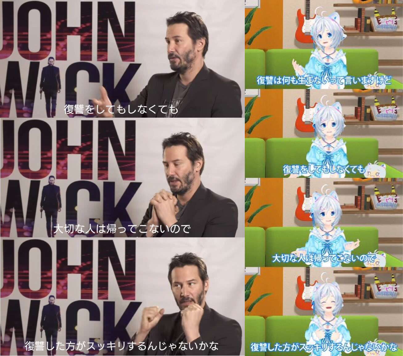 | … | 2625/08/18(月)21:09:40No.1344574464そうだねx3右が言ったのを左が言ったことにするコラが出回ってキアヌが訂正するまでになった |