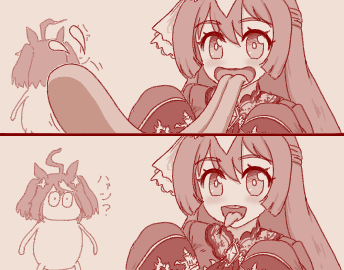 | … | 1925/08/19(火)15:30:55No.1344794620+まぁ馬のタンはこれくらい伸びるから許すが… |