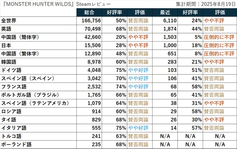 steamで言語別の評価見れるようになったせいで低評価爆撃しがちなのが日本人と中国人ってわかっちゃった