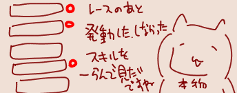 | … | 6625/08/19(火)18:30:35 ID:1hErkPDANo.1344839507+長距離と新潟以外は逃げでいいですよ 逃げだと速度足りませんねぇ…で行き詰まった時脚質変えますが 大体逃げでいいです |