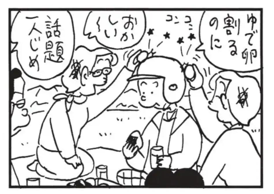 | … | 2825/08/20(水)13:09:26No.1345081604+>ゆで卵割る用ヘルメット持って行くとか人のためになることもするのかかりあげ 別の回で課長が自分の頭で卵を割る芸が持ちネタであることがわかるんだけどそのネタ潰しをする狙いもあると思う |