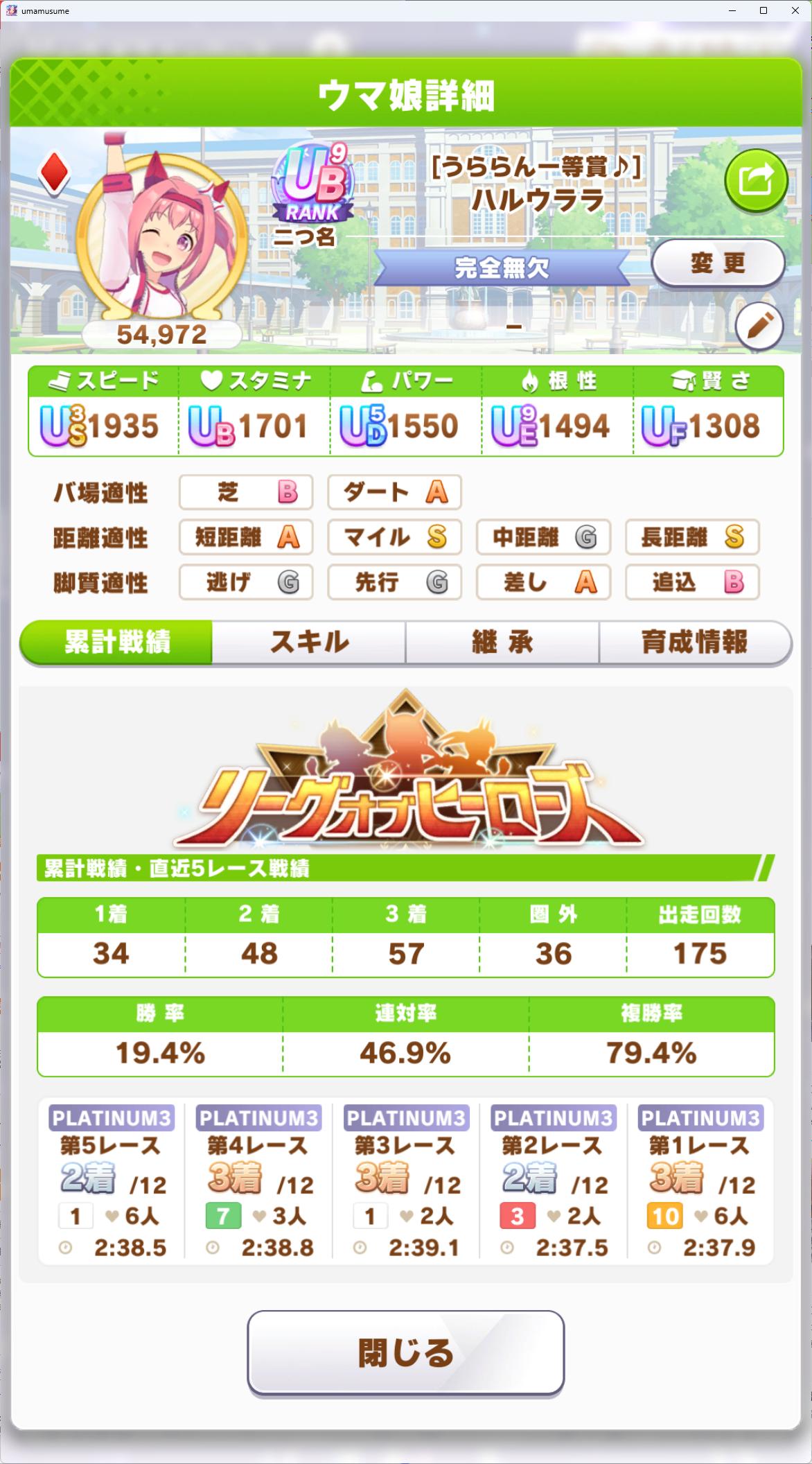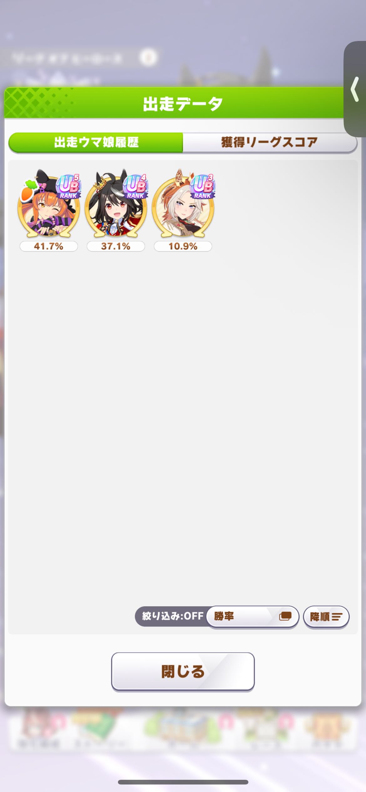 | … | 24925/08/21(木)21:11:12No.1345518726そうだねx3リリース以来ずっと雰囲気で育ててレース眺めてるけど何かそこそこ勝負になってるからいいか… |