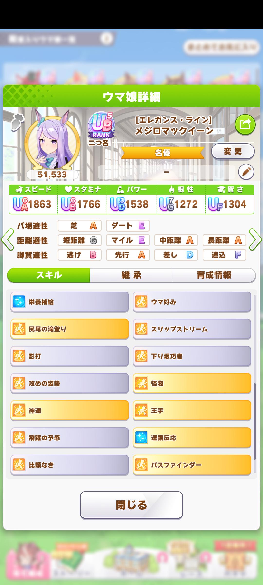 | … | 10025/08/21(木)20:45:12No.1345507862+ランクは無駄に根性高いとかはハリボテだから UB代でも必須スキルと継承や真髄加護シリーズどれだけ積んでるかで全然強さ違う |