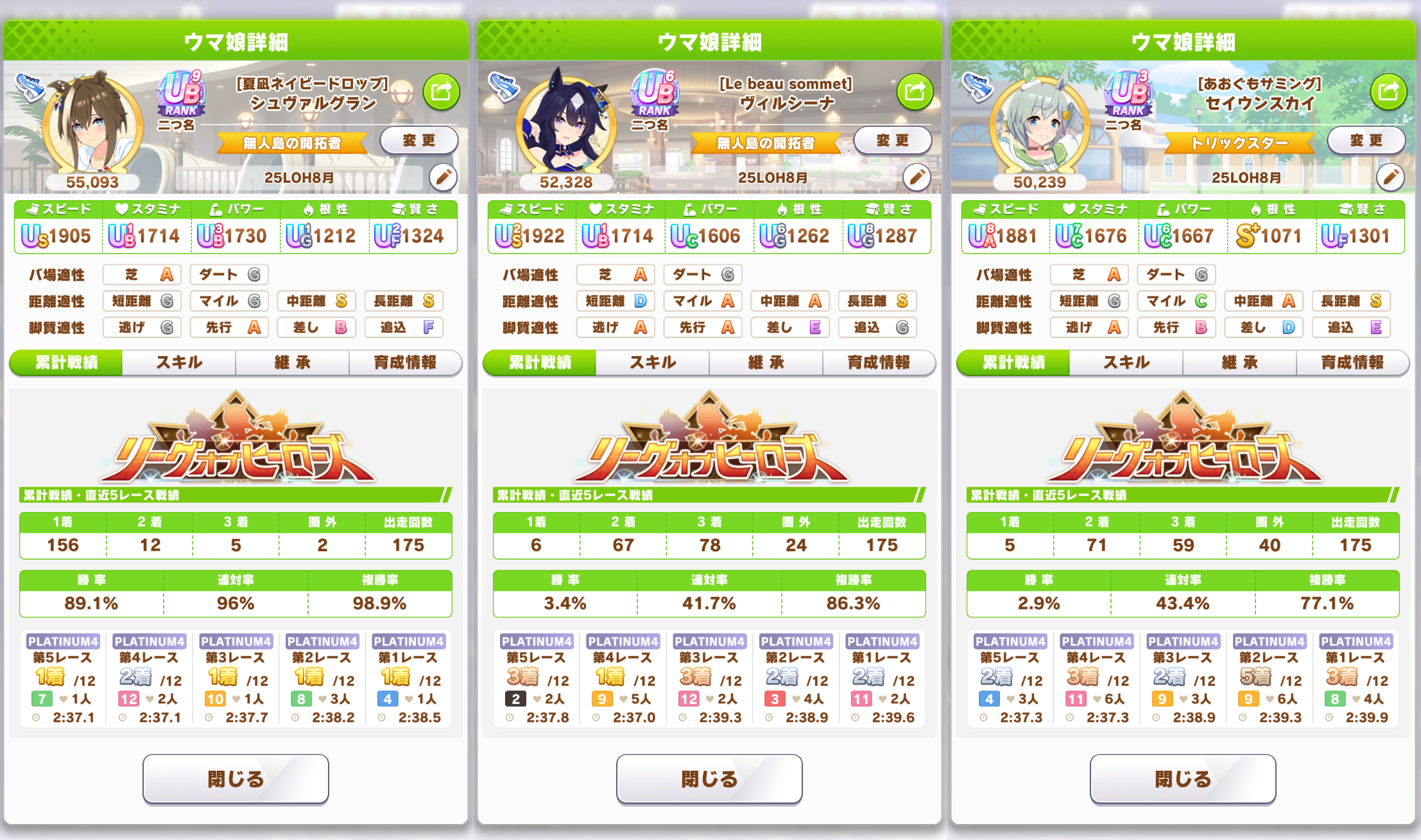 | … | 30025/08/21(木)21:17:52No.1345521427+ウマラボもズレてる所あるけど見やすさは最強だから チャンミ優勝やプラ4狙うならウマラボだけでいい ウマラボの悪いところはメタ外の攻略しないから推し育成は対応してない |