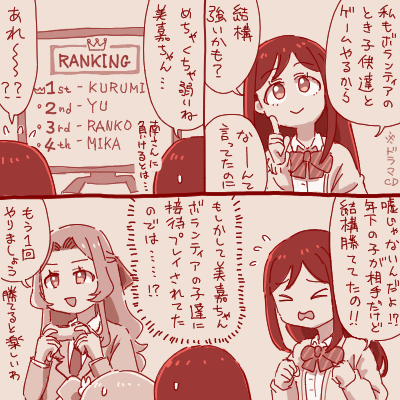 | … | 425/08/22(金)00:41:10No.1345594573+美嘉ちゃん不機嫌になるとめんどくさいからね… |
