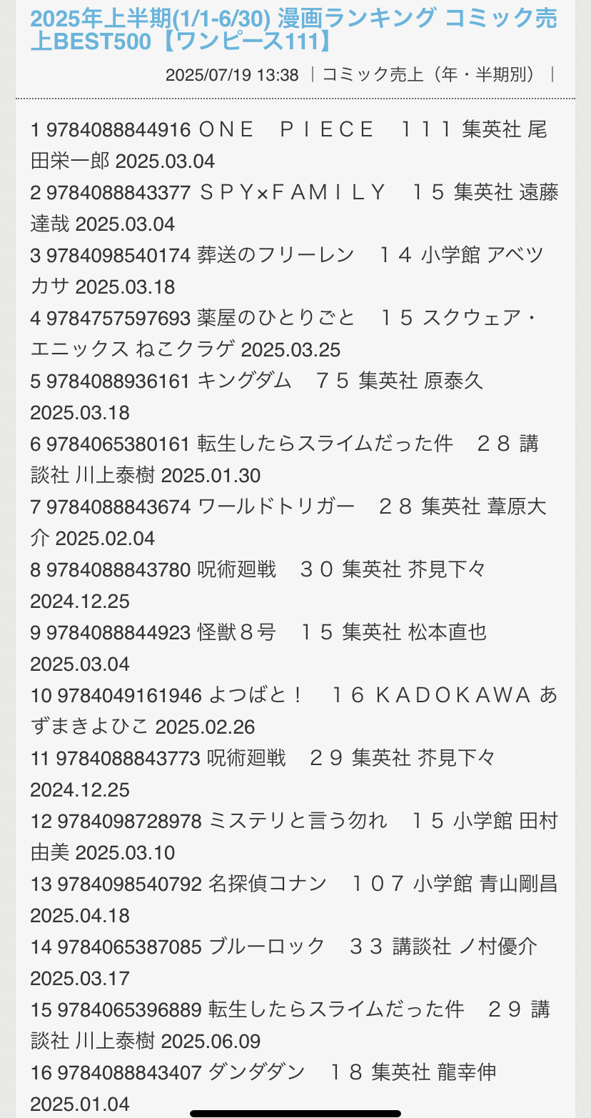 | … | 21325/08/23(土)08:57:36No.1345971023+>推しの子2000万部で怪8が1800万部なのに? |