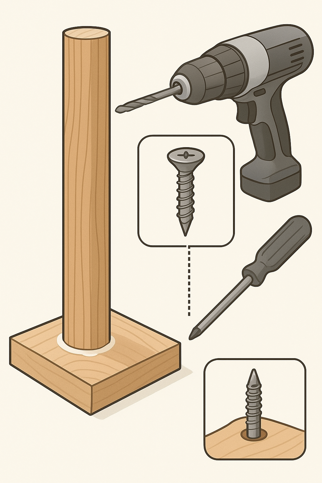 四角い木の台座を丸棒に固定したいんですが