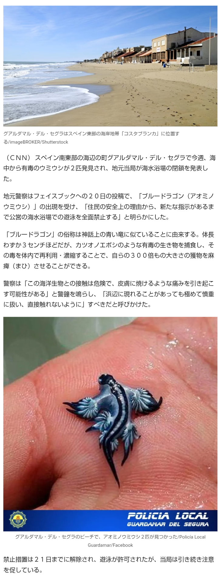 | … | 3025/08/24(日)16:10:48No.1346448696+オーストラリアで大発生して観光客にとんでもない被害与えたときのブルードラゴンくん見たかったな |