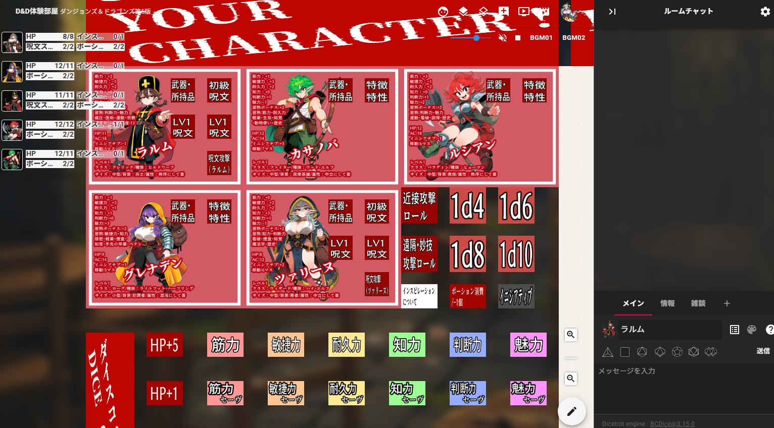 | … | 1025/08/25(月)23:45:21No.1346939743+>初期画面はこれでいいと思うけど進行中はボタン類は必要な時に必要な物だけをGMが出してあげるのが初心者には優しいというかゲーム全般のチュートリアルとして一般的かな |