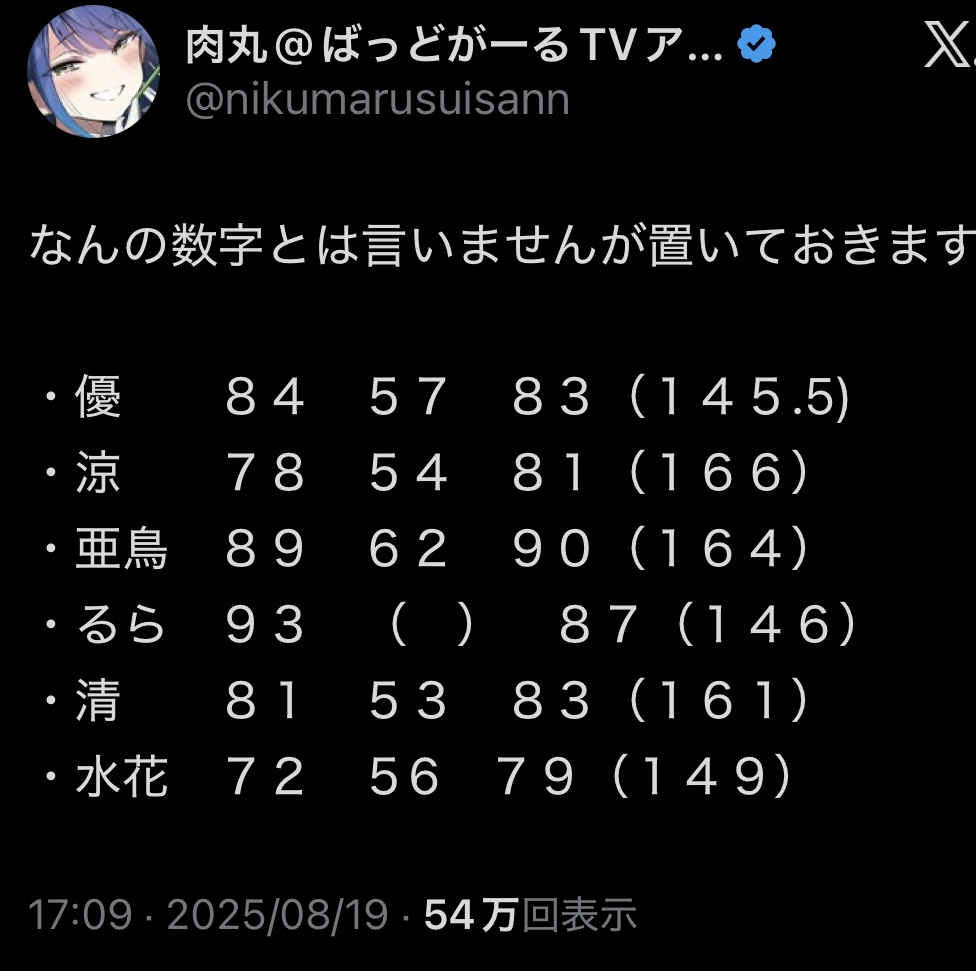 | … | 4025/08/26(火)01:39:51No.1346973949+>肝心の優ちゃんのばっどがーるのフリがハッキリ言って特に先輩の気を引くことに関して最善手ではないのが吹く |