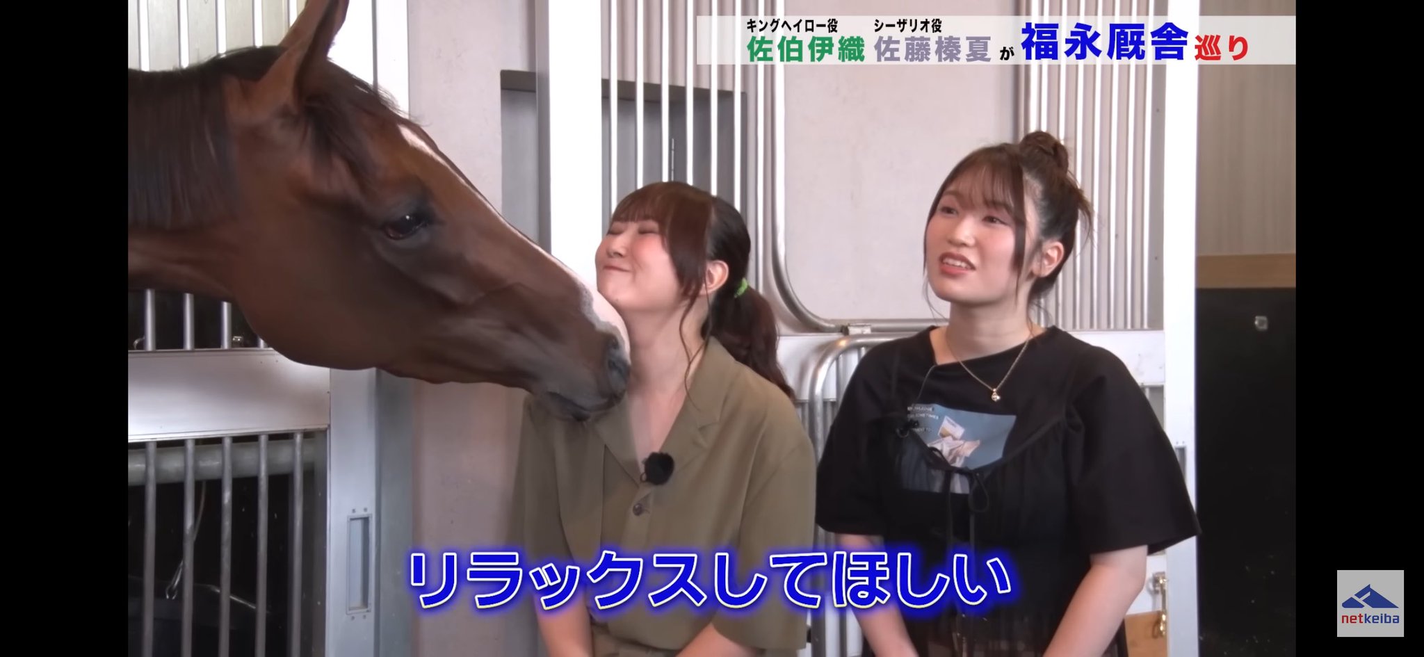 | … | 2725/08/27(水)11:58:10No.1347330263そうだねx3声優2人が見学してた時何だ何だ?とばかりに管理馬達が顔出してるのが面白い |