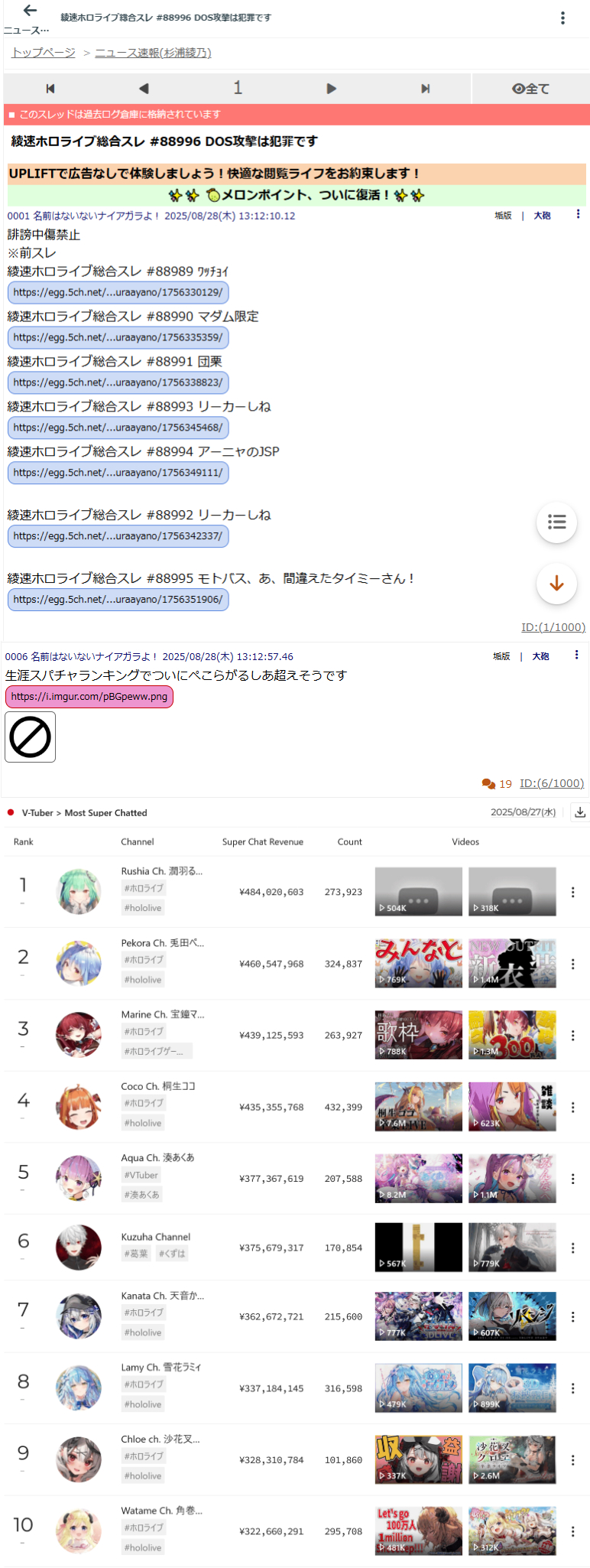 | … | 6525/08/29(金)21:48:40No.1348087894そうだねx6>そもそも今スパチャ頼りの方が珍しいよ |
