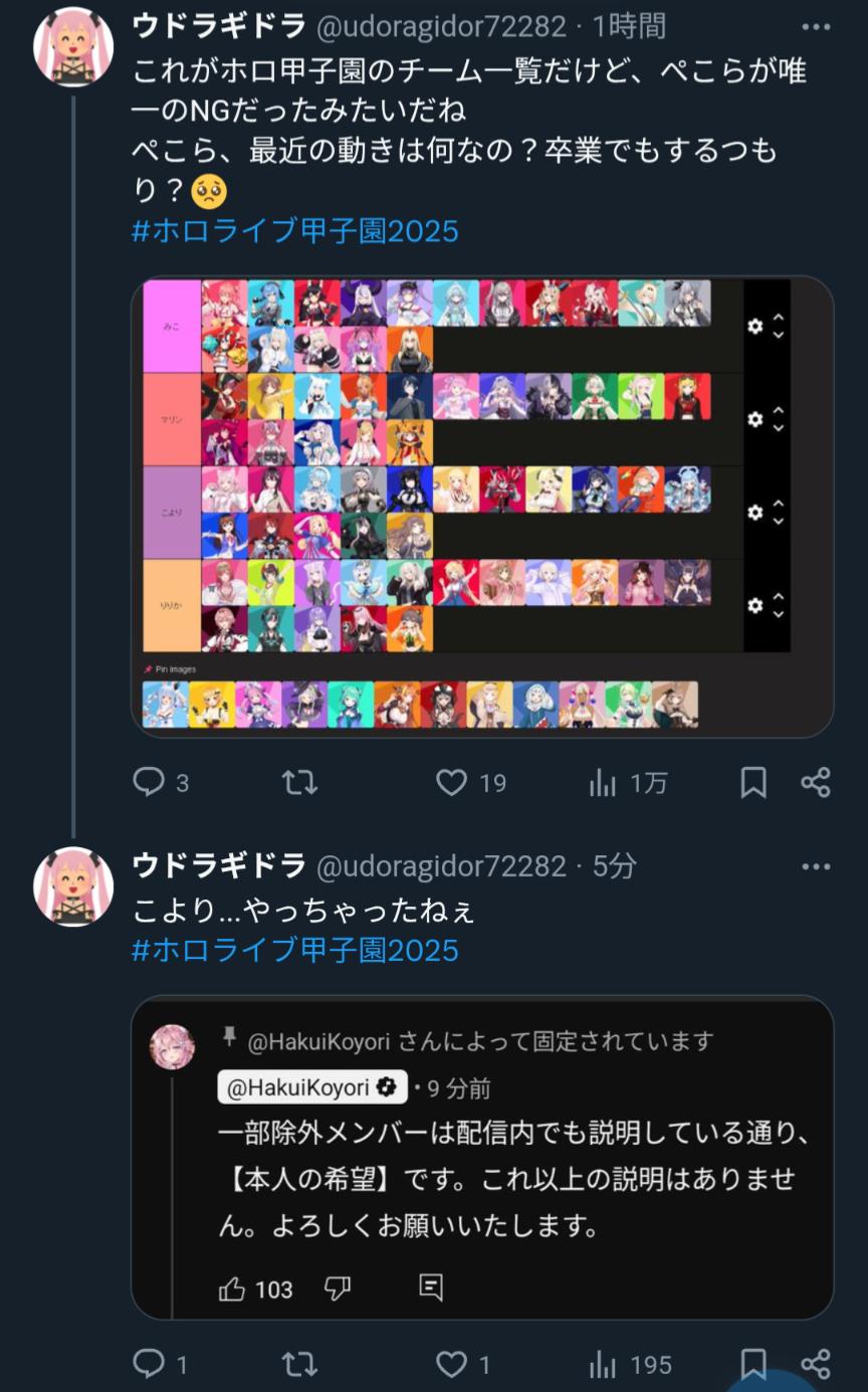 | … | 1025/08/31(日)22:38:19No.1348811797そうだねx6>これ誰もぺこーら選ばなかったの?何で? |