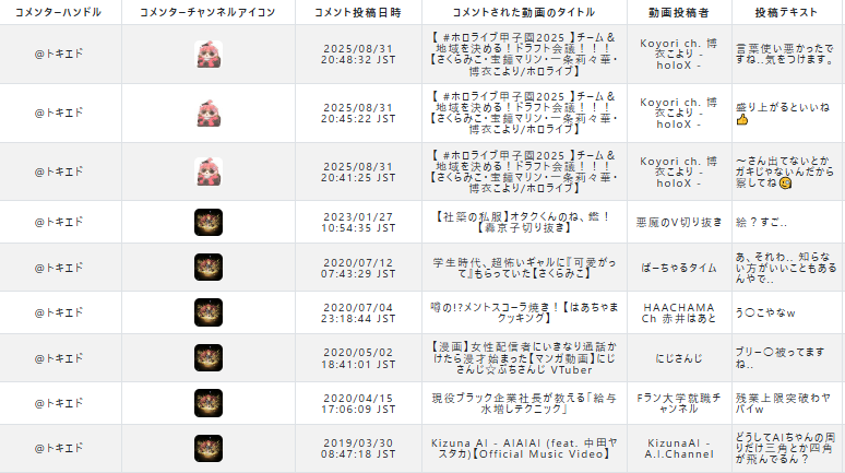 | … | 26825/08/31(日)23:52:45No.1348838019そうだねx1>>チャット共有率は「「あそこのリスナーキモいから絶対ホロリス兼任だろ」」とかが数字で全否定されて本当に面白いよ |