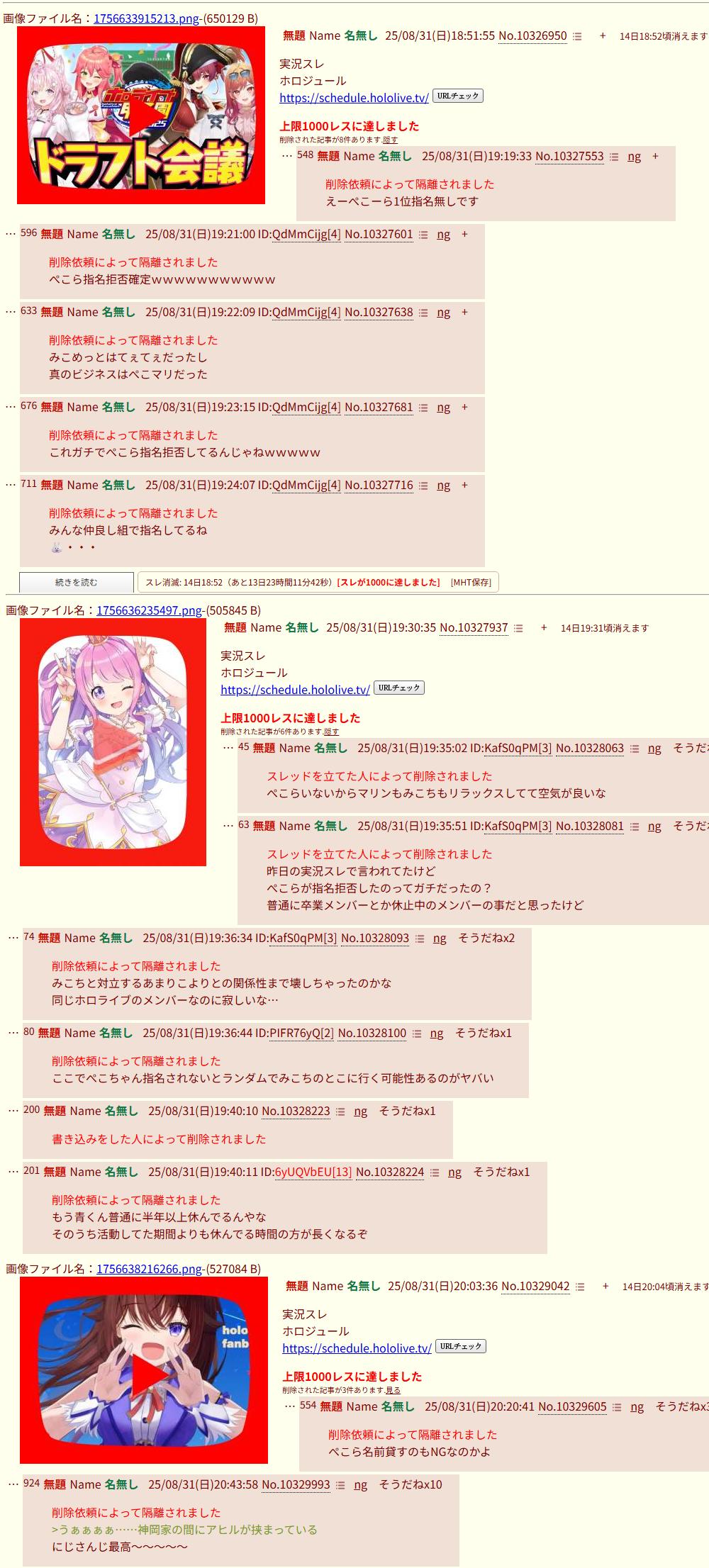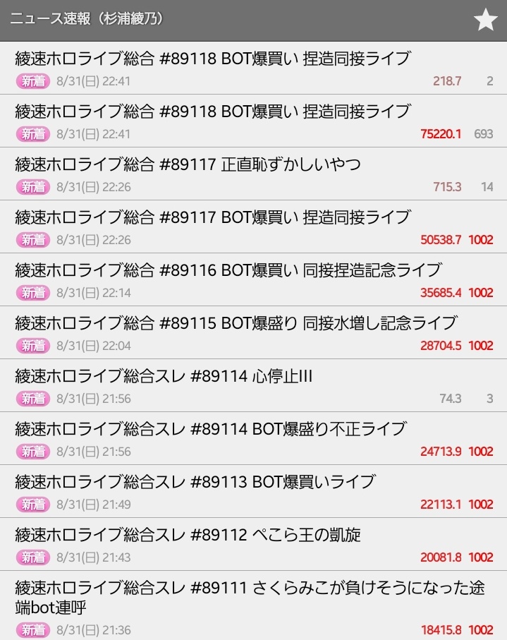 | … | 4125/09/01(月)15:09:39No.1348977625そうだねx6>多分これでぺこら粘着できる!!!!!!ってはしゃいだ直後にライブの数字で現実見せられてバグっちゃったんだと思う |